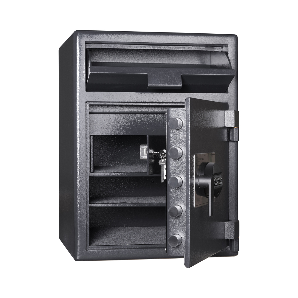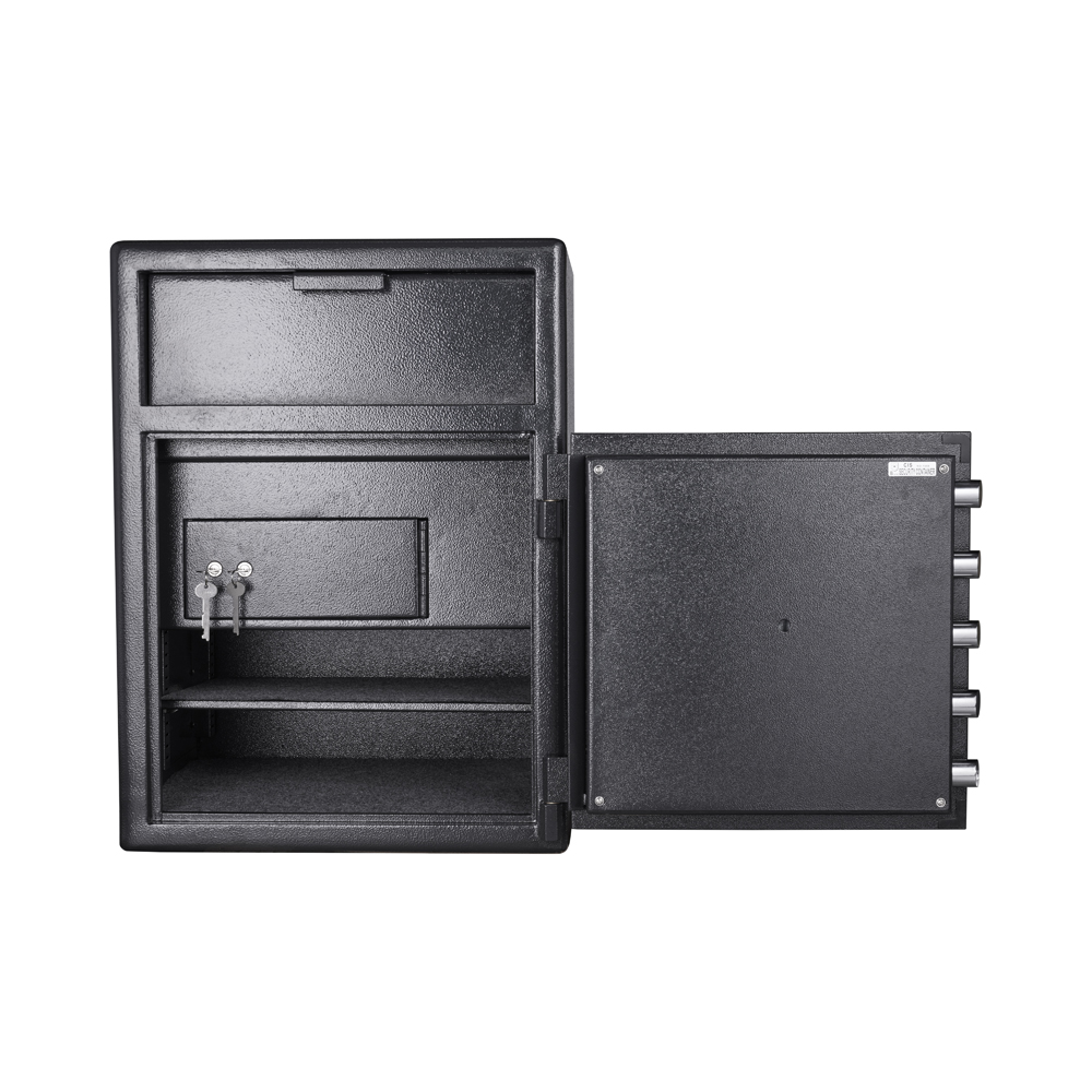 With the addition of the internal key lockable secure deposit compartment, the DD-3 caters for more sophisticated cash management requirements by offering 3 levels of access to the safe. Dual keying ensures that a master key holder needs to be present in order to open the internal compartment that holds all deposited valuables. Along with the increase in overall size and storage capacity, the DD-3 offers more value and flexibility than any other safe in the series.
